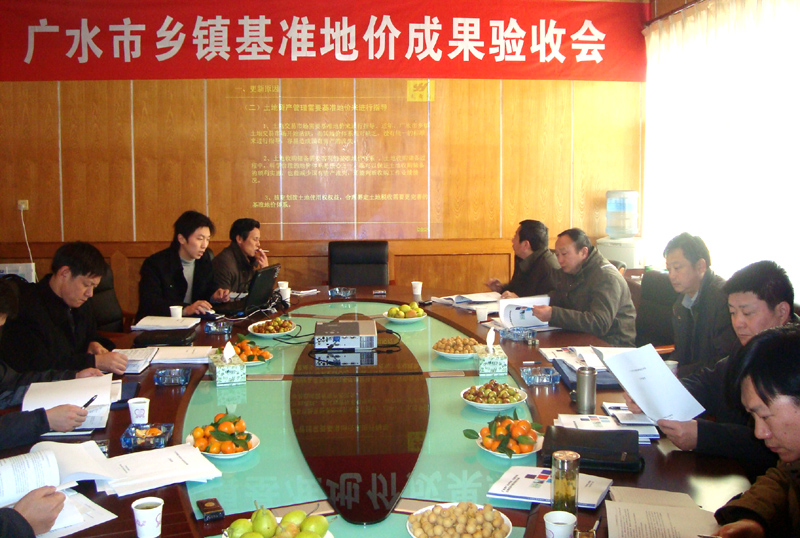 本次验收会由随州市国土资源局组织召开。验收组成员有随州市国土资源局副局长彭晓可、利用科科长方胜斌及科员罗杰,随州市物价局副局长何行国、科长周军,广水市物价局副局长曹宏富、科长付耀平。广水市国土资源局局长梅思卫、副局长程天亮、利用科科长夏礼和,广水市资深评估专家韩厚炳等参加了会议,永业行董事长方国成、研究部经理肖囯斌、助理经理冉超等也参加了验收会。