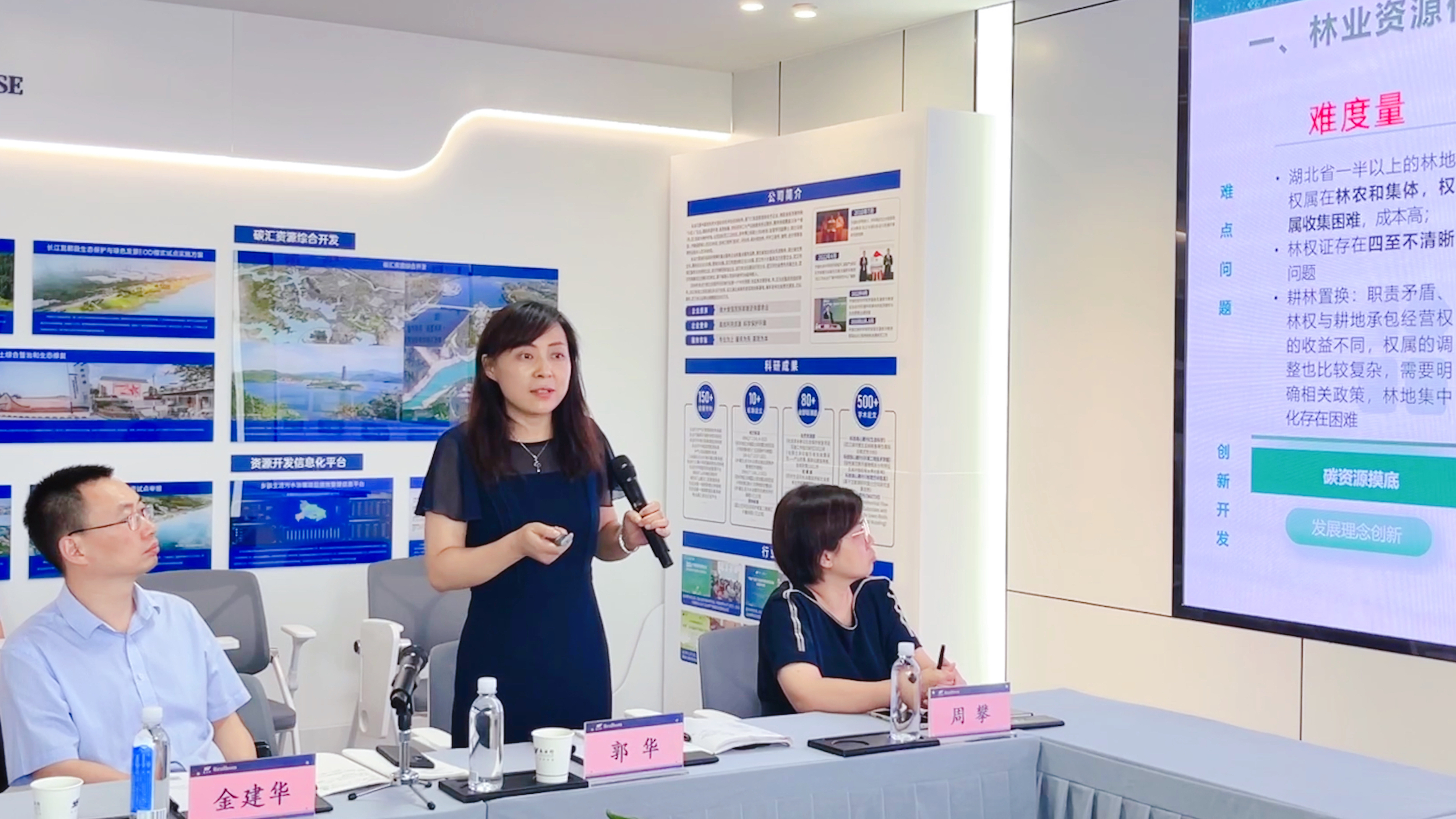 永业行技术副总监、技术研发中心(研究院)总经理郭华以林业资源价值实现的主要难点为切入口,结合林业碳汇开发政策基础和行业前景,系统介绍了永业行推进林业碳汇工作的总体思路和业务体系,重点阐述了永业行在自然资源梳理、林业碳汇价值评估、林业碳汇开发、综合开发类项目谋划及筹融资、林业碳汇价值实现等方面的实践探索。针对“如何创新探索‘林草湿+’一体化实施路径”,她围绕碳汇摸底调查与价值评估、开展湖北省林业碳汇项目清查、建立省级碳汇项目储备库等方面,介绍了永业行构建 “试点先行——经验总结——全省‘一盘棋’ ”模式的工作探索,并提出相应建议。